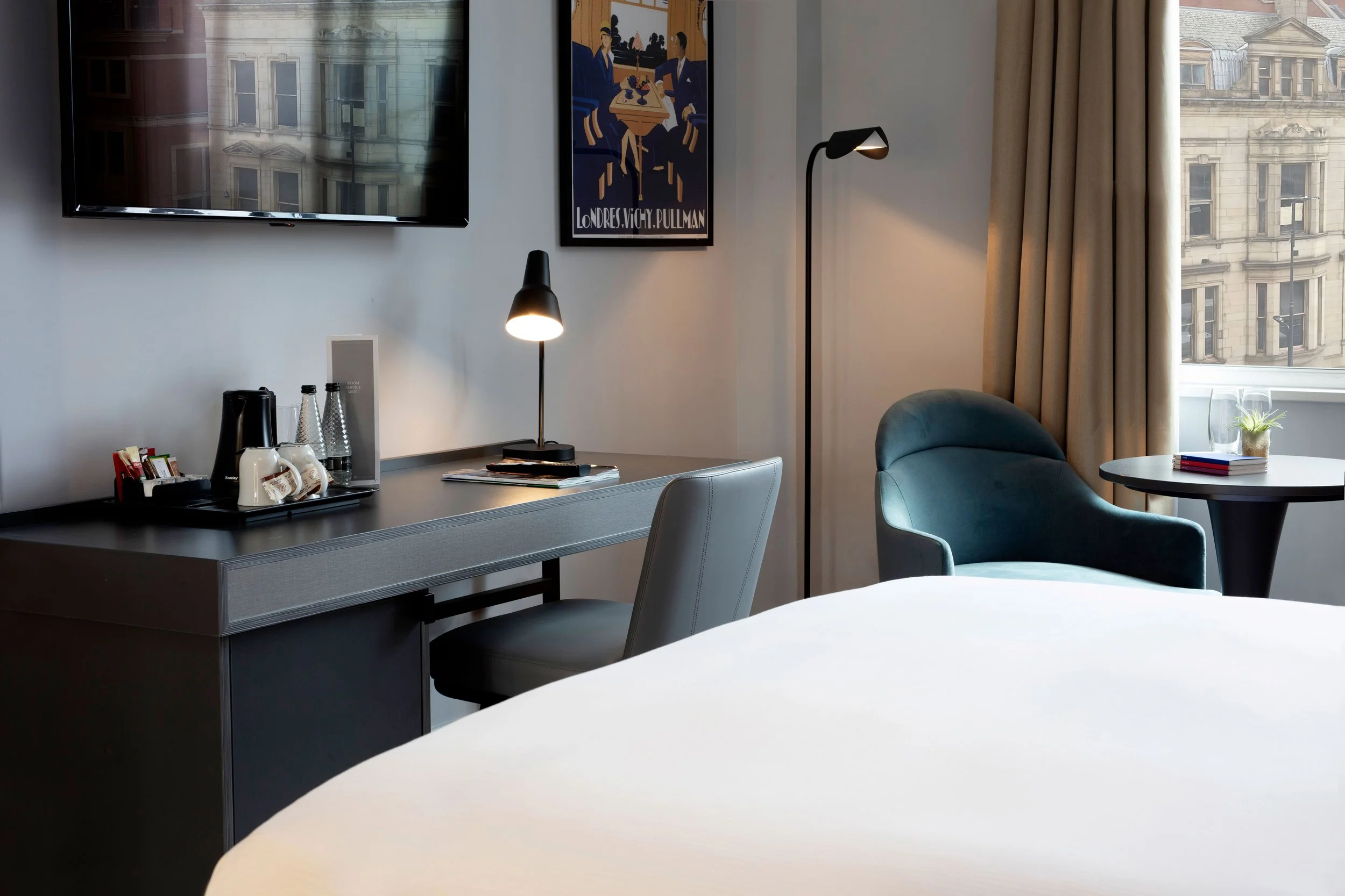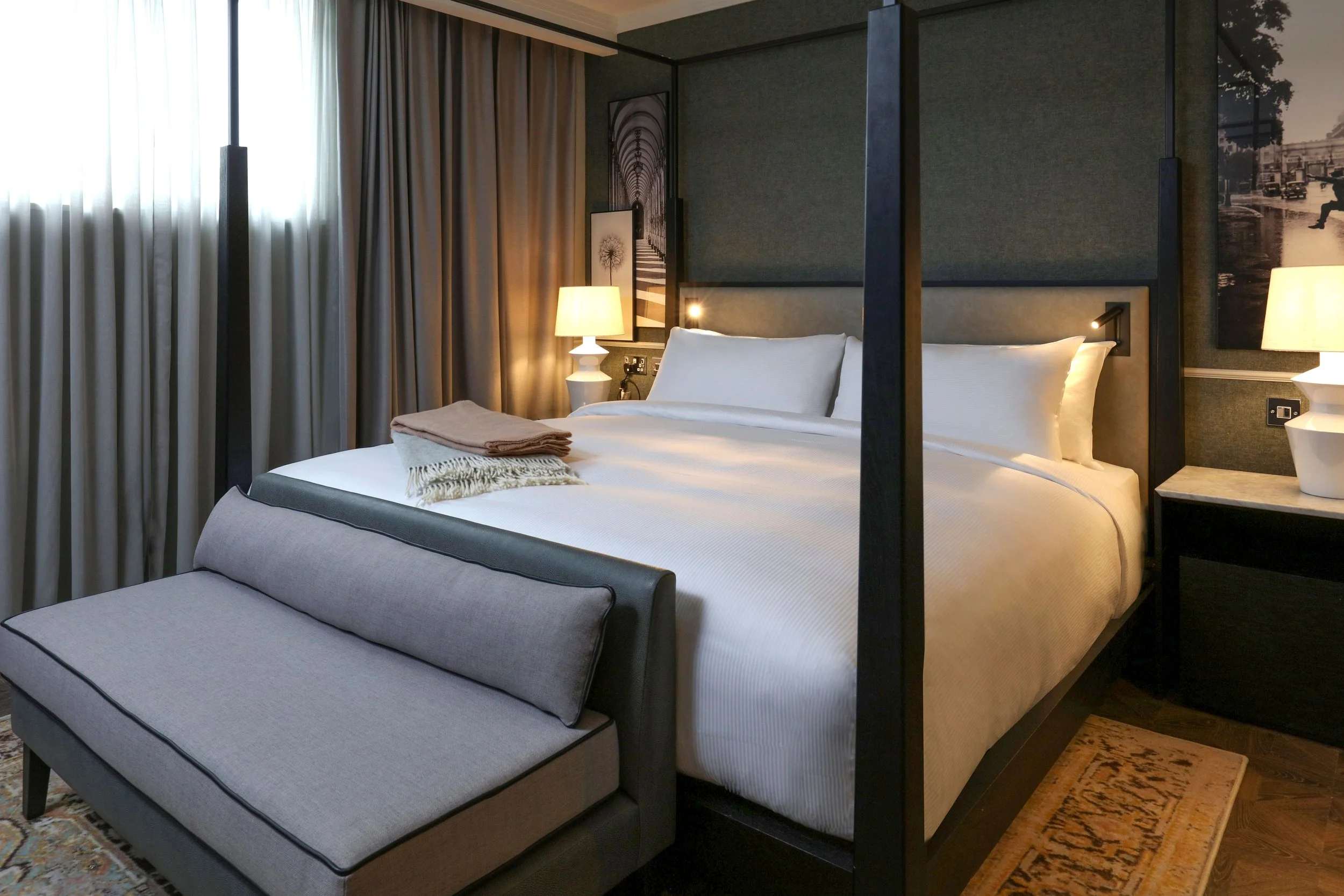 The Queens Hotel, Leeds enjoys a prime central location in the north of England, attracting a diverse range of guests. The design concept focused on enriching the guest experience through bespoke furnishings, meticulously crafted details, and subtle nods to the hotel's storied past. The project included a design competition for the public areas, and a comprehensive design process; from initial brief to completion; for 232 guest rooms, including suites, a Presidential Suite, and corridors. In collaboration with the operational design team, we enhanced the accommodation, transforming the rooms of this iconic city hotel into exceptional, contemporary spaces.