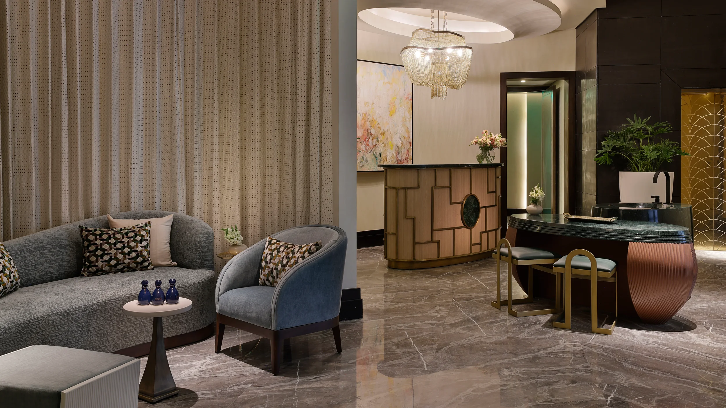 Re-imagined the interior of the atrium by transforming previously disconnected spaces into a cohesive master plan, crafting a harmonious guest journey that seamlessly integrates arrival, culinary and mixology experiences with inviting social spaces. Throughout the atrium, it is evident that biophilic design plays a vital role in creating an indoor oasis within the heart of Cairo.