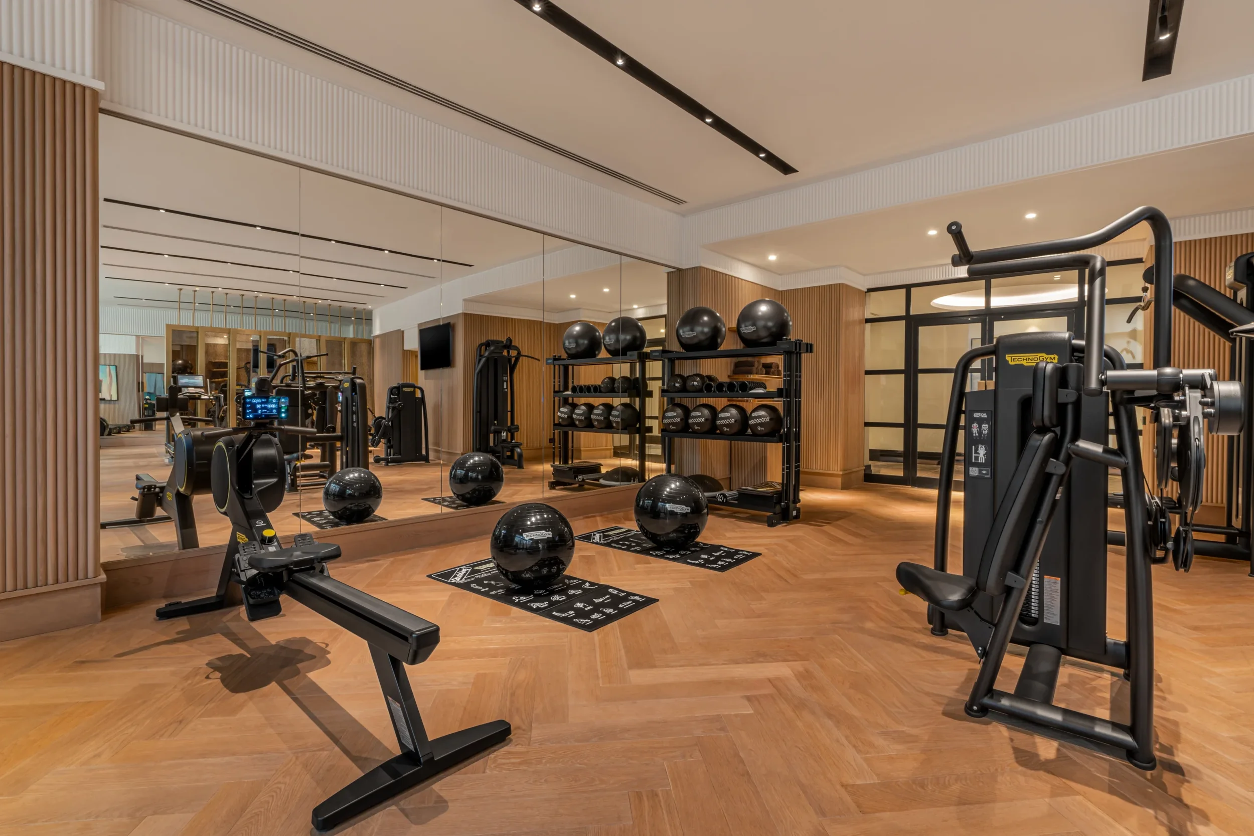 The spa and fitness zones were the only new-build elements of the project. The spa was conceived around the concept of each treatment room functioning as a VIP cabin, thoughtfully equipped with all the essential features to promote relaxation and rejuvenation. The fitness area was designed to energise and recharge, leaving guests refreshed and ready to take on the day.